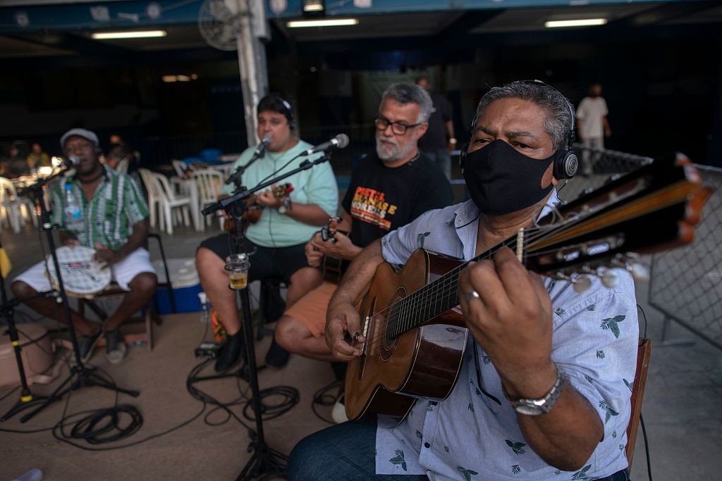 当地时间2020年10月26日,巴西里约热内卢,当地社区俱乐部举办一场桑巴舞音乐会。由于疫情被禁止举办八个月后,传统的周一桑巴舞音乐会在采取了社交距离措施后又重新开始。图片来源:视觉中国