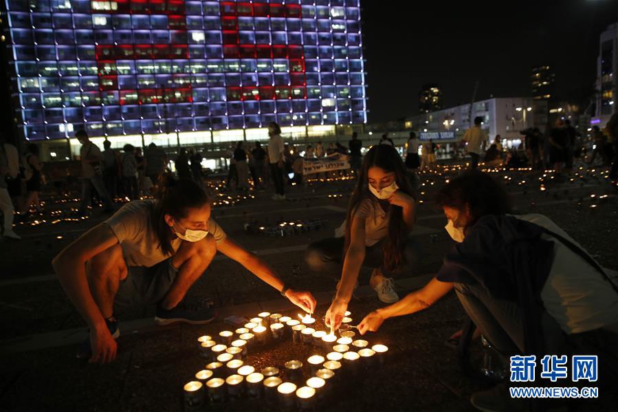 10月29日,在以色列特拉维夫,人们点燃蜡烛纪念前总理拉宾遇刺25周年。 新华社发(吉尔·科恩·马根摄)