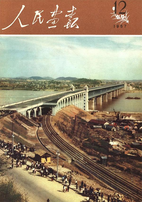 《人民画报》1957年12月刊封面,刚刚建成的武汉长江大桥。大桥的建成是20世纪60年代中国基础设施建设的重要成就之一。