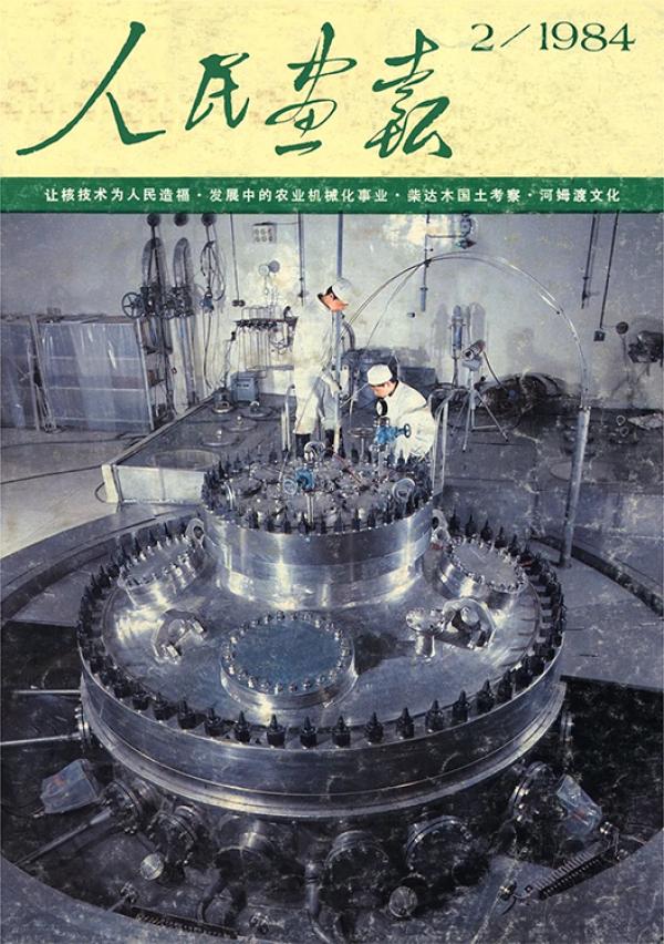 《人民画报》1984年2月刊封面,中国自行设计建造的大型高通量原子反应堆堆体。