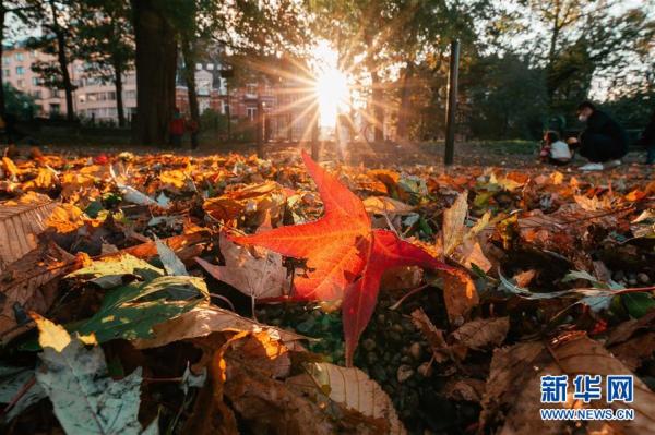 这是10月23日在比利时布鲁塞尔拍摄的落叶。 深秋时节,比利时首都布鲁塞尔景色怡人。 新华社记者 张铖 摄