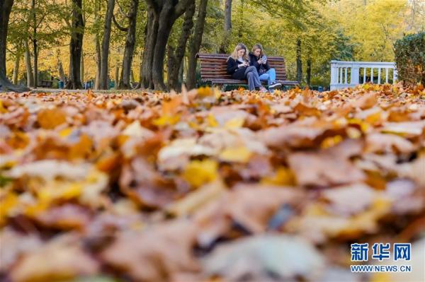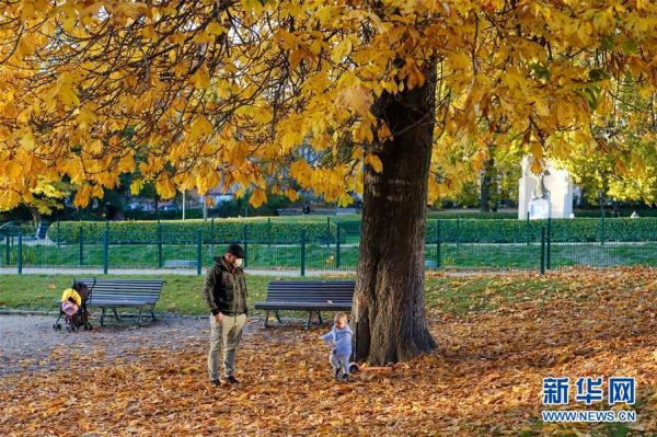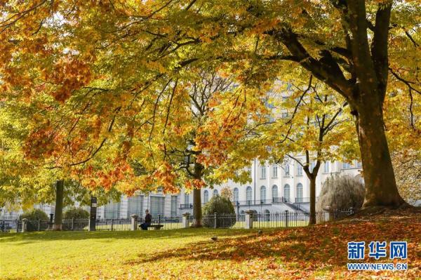 10月26日,人们在比利时布鲁塞尔的利奥波德公园欣赏秋景。 深秋时节,比利时首都布鲁塞尔景色怡人。 新华社记者 张铖 摄