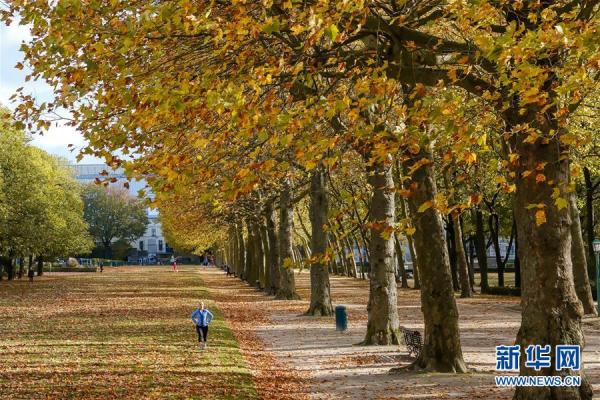 10月26日,一名女子在比利时布鲁塞尔的五十周年纪念公园锻炼身体。 深秋时节,比利时首都布鲁塞尔景色怡人。 新华社记者 张铖 摄
