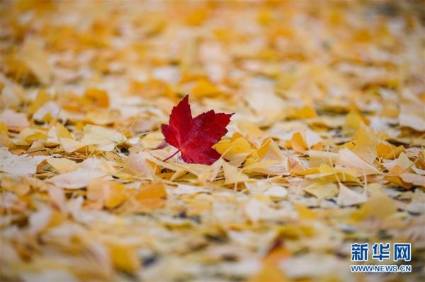 这是10月24日在比利时布鲁塞尔拍摄的落叶。 深秋时节,比利时首都布鲁塞尔景色怡人。 新华社记者 张铖 摄