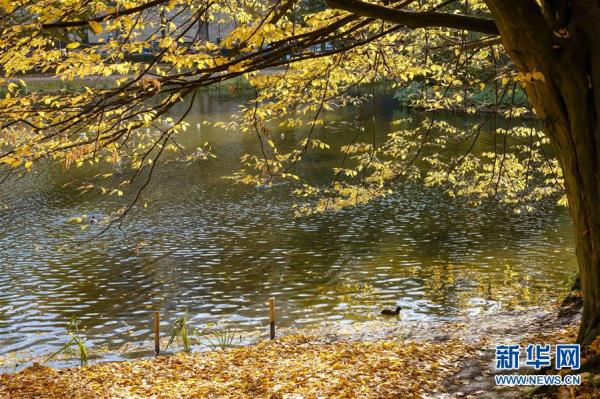 这是10月26日在比利时布鲁塞尔利奥波德公园拍摄的秋景。 深秋时节,比利时首都布鲁塞尔景色怡人。 新华社记者 张铖 摄
