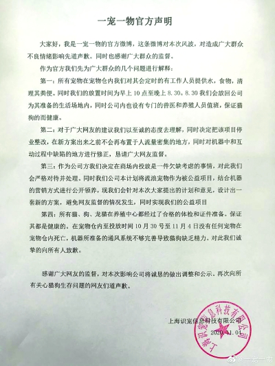 该负责人坦言,她自己家里也养了宠物,最初并未想到网上舆论的关注点会放在“虐待”宠物上,在机器运行期间,他们也并未收到顾客或网友的反馈,否则一定会及时停止该项目。