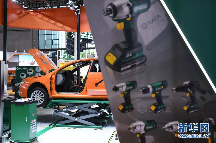 在进博会技术装备展区拍摄的世达展台汽车装配设备。