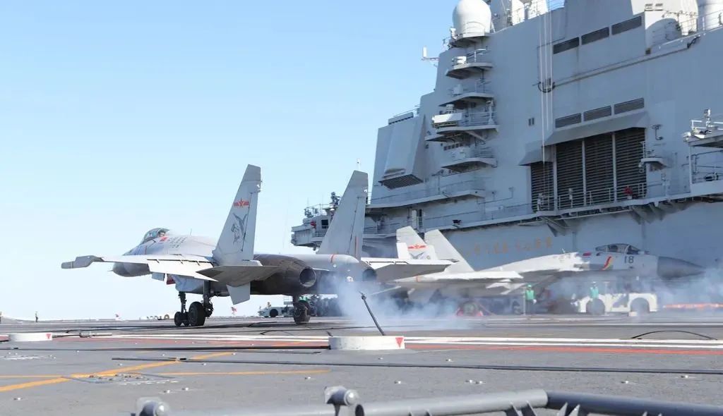11月上旬,海军航空大学一名飞行学员驾驶歼-15舰载战斗机在辽宁舰成功实施阻拦着舰。