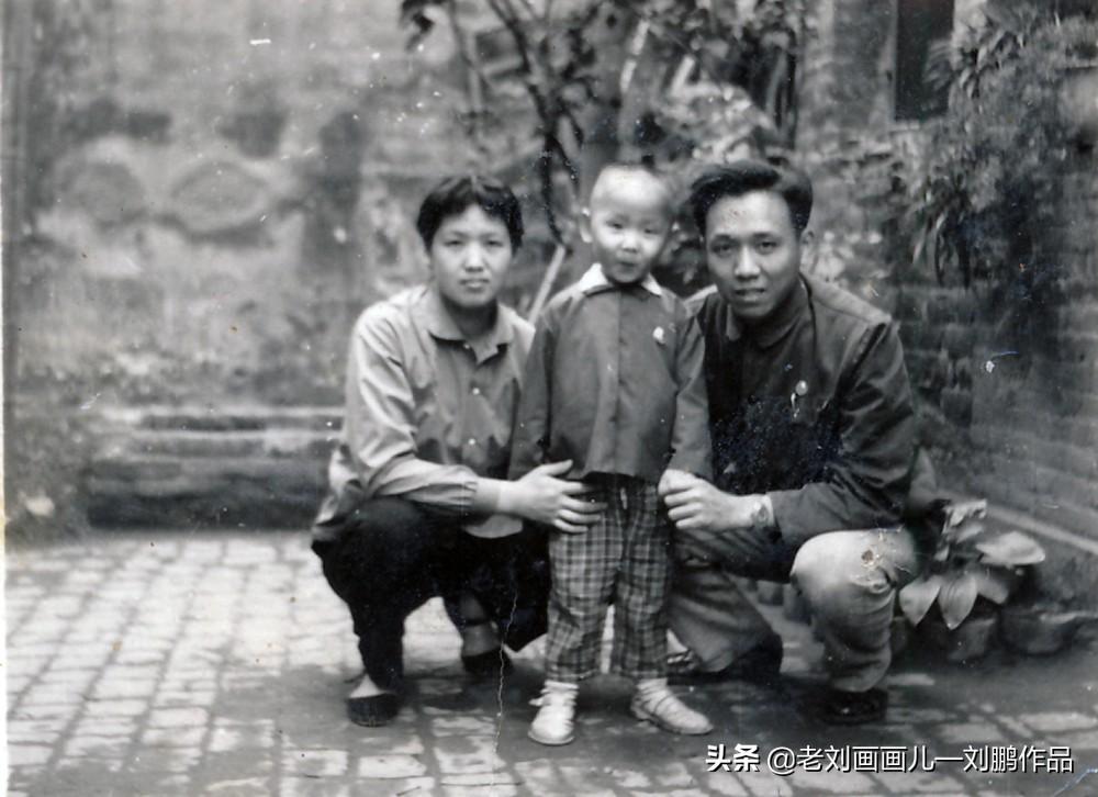 1966年在小院窗前,我和父母合影