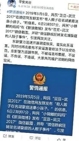 2019年5月8日,经湖北武汉东湖新技术开发区公安分局证实,微信朋友圈中宣称“有人贩子在名湖豪庭迷晕小孩子”的消息系谣言,于是对两名散布不实谣言者依法予以治安处罚。
