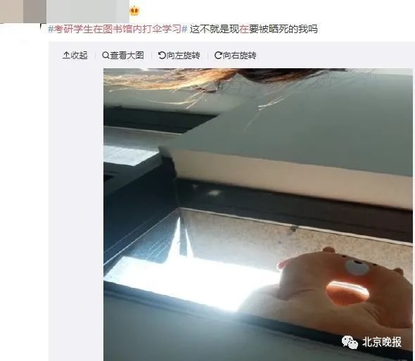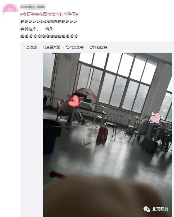 纷纷在图书馆里打起了太阳伞