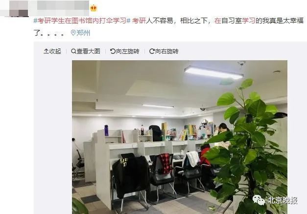#考研学生在图书馆内打伞学习#