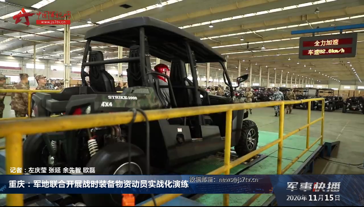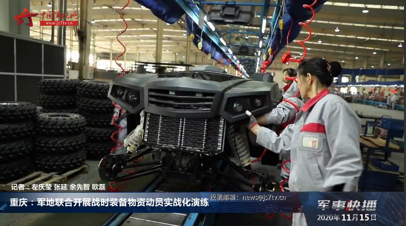 东方网·演兵场11月16日报道:据中国军视网报道,由重庆警备区、市政府军地多部门联合组织实施的战时装备物资动员征用实战化演练,于11月14日在其辖区各区县展开。演兵场注意到,此次演练以信息化条件下支援保障部队作战为背景,将全地形车、平板拖车等民品迅速转产成全地形战车、坦克拖车等军品,工业大国的强大“战争潜力”可见一斑。