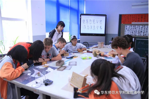 华东师范大学附属周浦中学是一所具有近百年历史的老校,也是篆刻特色学校和上海市首批“篆刻进校园”试点学校。学校秉持“爱、俭、韧、诚”的校训和“生活化教育”办学理念。提出了“科技让生活更美好,艺术让生活更美好”的发展方向,以美育推进“立美育德”促进学生“人格完善”,以科技创新引领学生“学力坚实”。学校非常重视民族传统艺术教育在美育、德育中对学生成长的独特价值。华东师范大学附属周浦中学逐渐形成了在区级和市级有影响力、辐射力的篆刻艺术教学特色。
