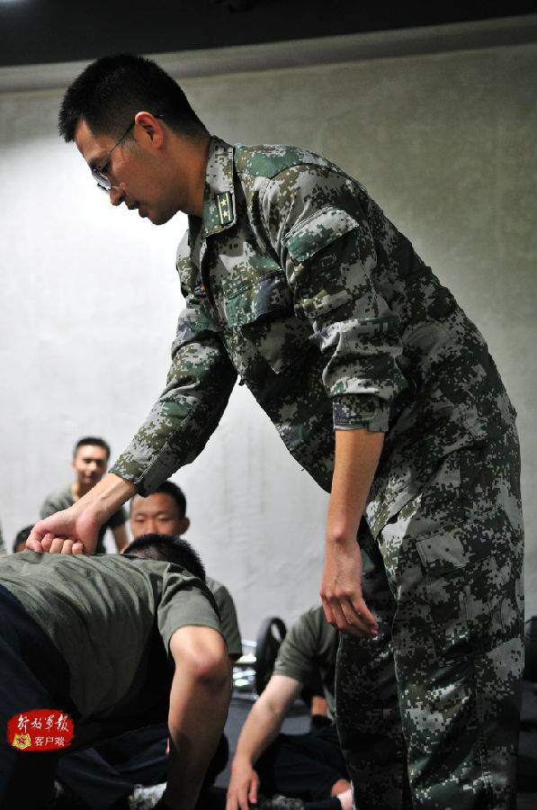 郝鑫鑫教员为学员纠正动作。