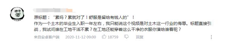 原标题是“累吗?累就对了,舒服是留给有钱人的”,视频中试图以轻松幽默的“凡尔赛”方式呈现出有钱大小姐的搬砖体验,让很多网友大呼不能接受。