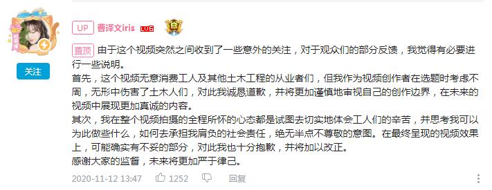首先,这个视频无意消费工人及其他土木工程的从业者们,但我作为视频创作者在选题时考虑不周,无形中伤害了土木人们,对此我诚恳道歉,并将更加谨慎地审视自己的创作边界,在未来的视频中展现更加真诚的内容。