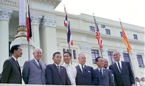 1966年,东南亚条约组织成员国元首在菲律宾马尼拉国会大厦前合影。图源:澎湃新闻