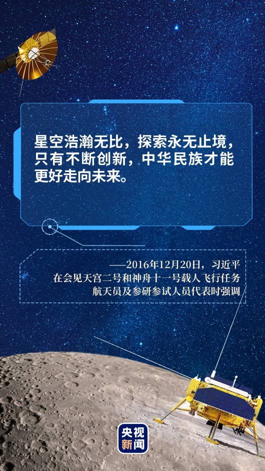 站在新的历史起点,中国航天工作者仰望星空、脚踏实地,在奋力奔跑中探索星空,在逐月之路上砥砺前行,力争创造新时代中国星空探索的更大奇迹。