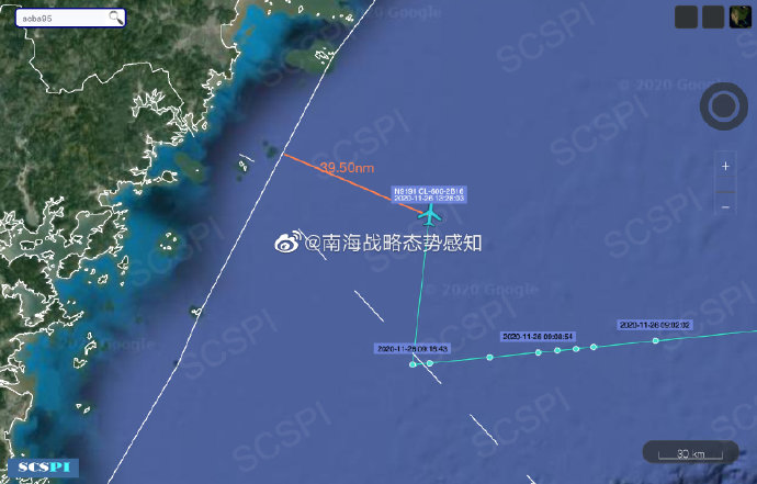 值得注意的是,这架CL-604侦察机于26日也同样前往东海进行作业,最近时距离浙江领海基线仅约39海里,这也是近期监测到最近的一次。