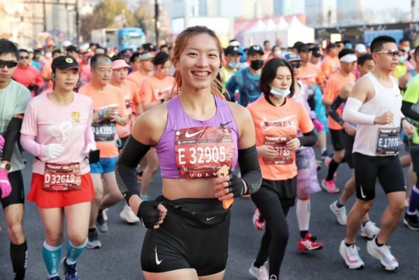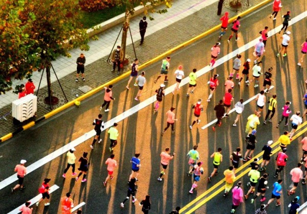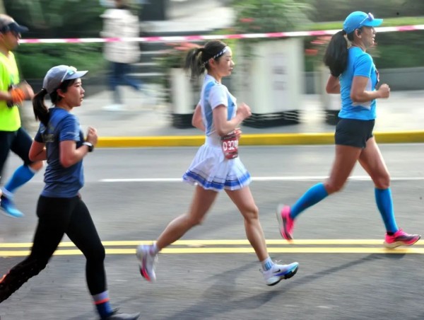 跑者们沐浴在和煦的阳光下