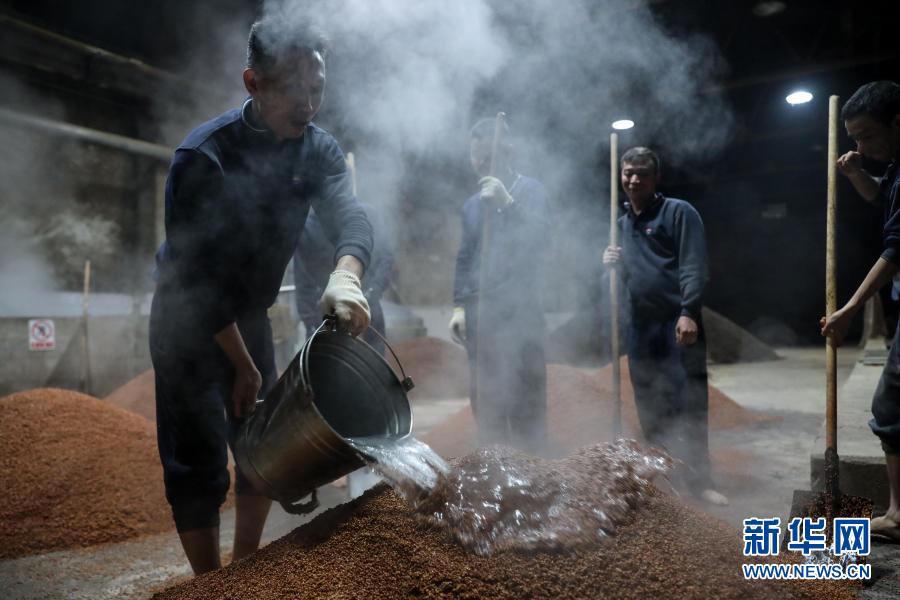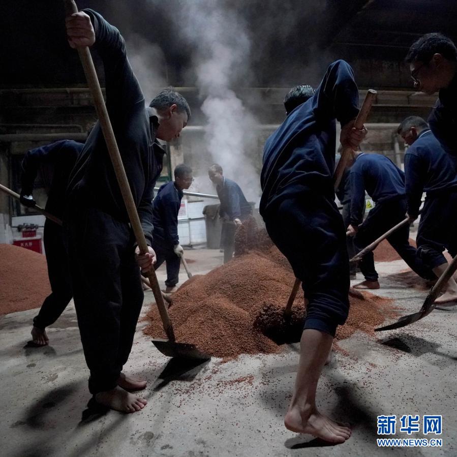 小雪刚过,贵州省仁怀市茅台镇茅台酒厂制酒车间一派忙碌景象。茅台酒传统酿造工艺始于秦汉,熟于唐宋,精于明清,需经一年生产周期,二次投料、九次蒸煮、八次发酵、七次取酒。传统技艺的传承,也赋予了其独特的口感和醇香。