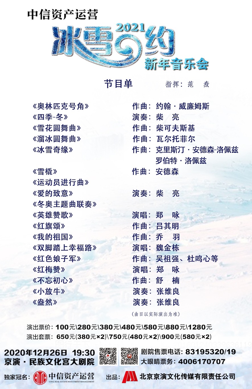 每年的12月下旬,一场因冬奥而生的新年音乐会都会在京演·民族文化宫大剧院如约而至。12月16日至2021年1月2日期间,第六届“冰雪之约”新年演出季将带来6场演出。