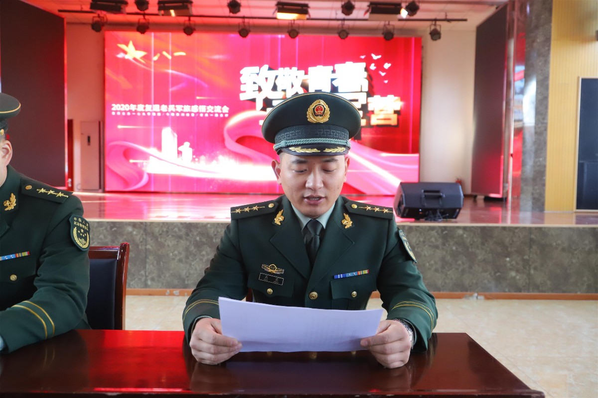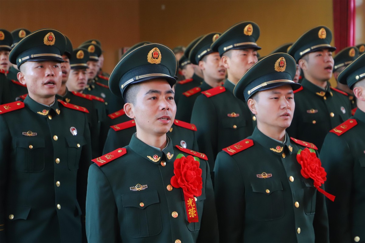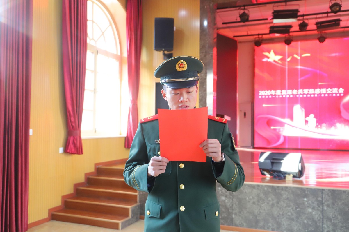 “光阴似箭,转眼间我们这批老兵即将脱下这身心爱的橄榄绿……”即将退役的上士于占胜走上台前,代表全体老兵许下承诺:“一定遵守纪律,文明返乡踏征程。”