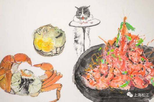 12月3日上午,松江画家杨纪文个展“纪文画图”在仓城艺云阁开幕,30余幅纸本水墨画新作呈现出浓浓的生活气息和恬淡不失丰美的生活滋味。