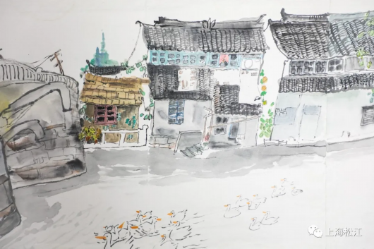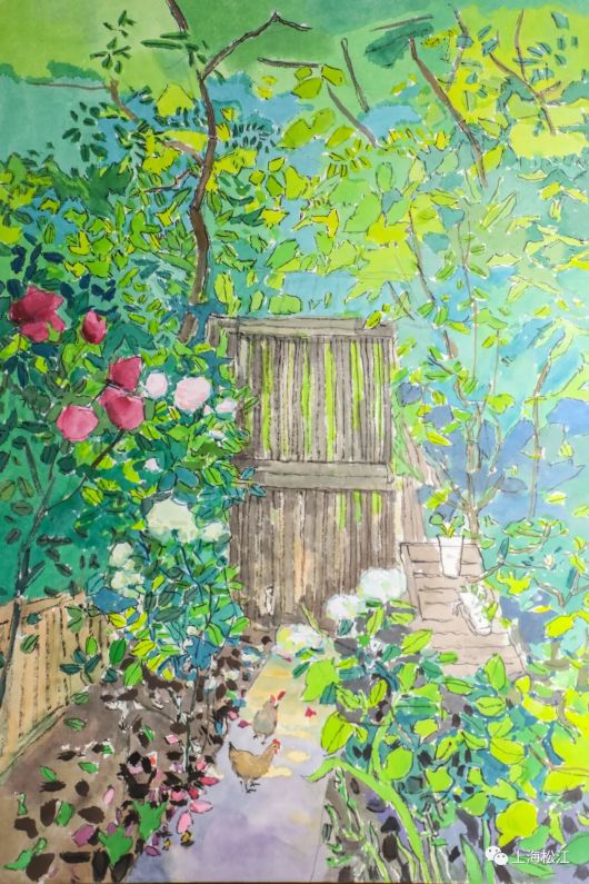 杨纪文告诉小松,今年受疫情的影响,自己大部分时间都在松江静心创作,沉下心来观察日常生活,在仓城、佘山、天马山等处写生,此次展出的新作也大都与松江有关。