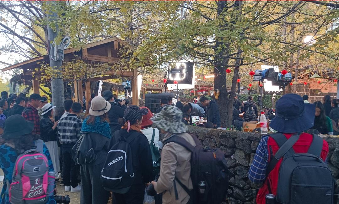 年关将至,正是云南银杏村树叶飘落,遍地金黄的时候。但是在12月1日晚,饱览景色的游人与村民却聚集在几处民宿附近,围观一道“快闪景点”。