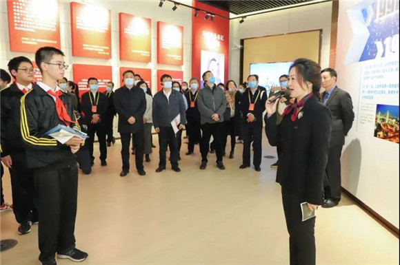 2020年12月2日,全国中小学德育工作会议在上海召开,交流总结各地中小学德育工作经验做法。当天下午,在教育部党组成员、副部长郑富芝带领下,来自中央宣传部、中央文明办、共青团中央、生态环境部、文化旅游部、卫生健康委以及各省级教育行政部门和全国基础教育教学指导委员会的与会代表实地走访,考察上海中小学德育工作。其中一站来到了浦东展览馆。