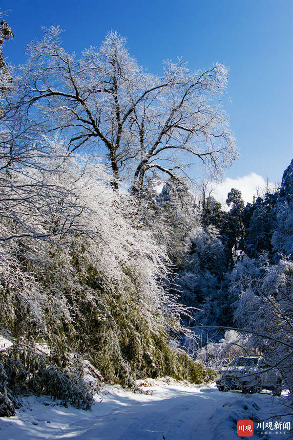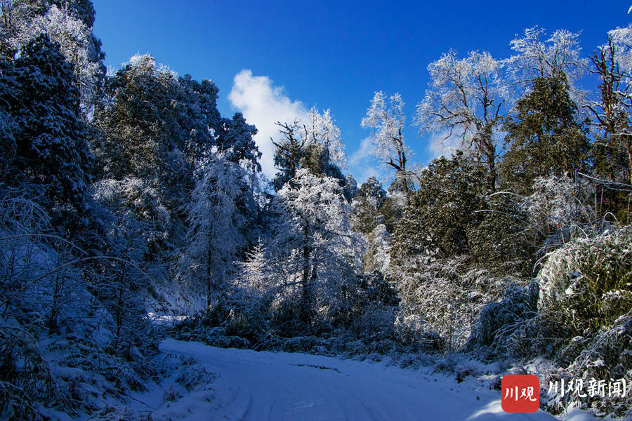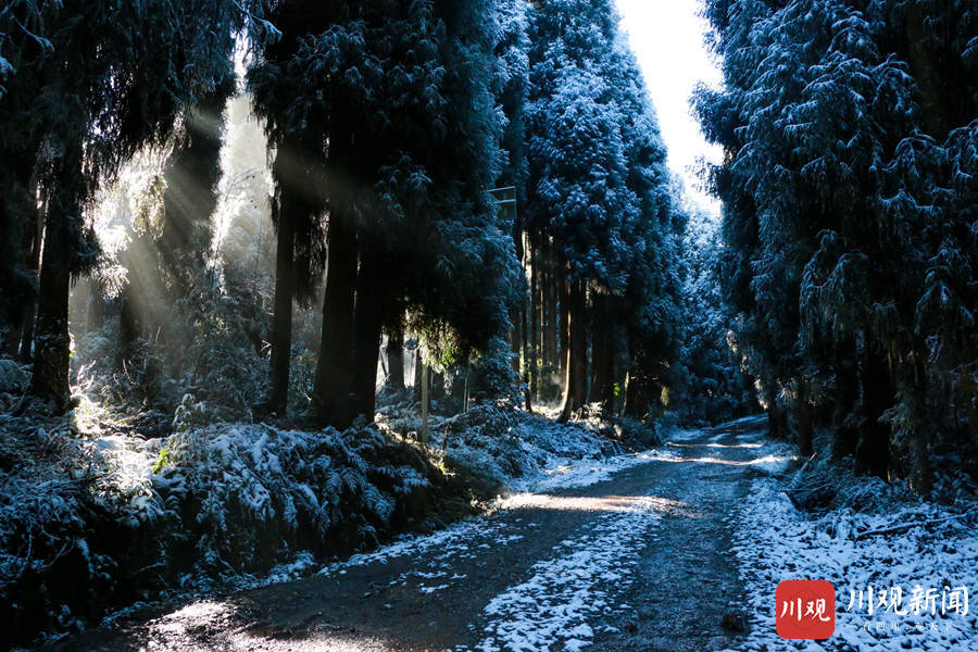 12月4日,由于连日来气温陡将,荥经县龙苍沟国家森林公园变成了一个冰雪童话世界。纷纷扬扬的大雪让整个景区“银装素裹 分外妖娆”,宛若人间仙境,美丽雪景吸引各地游客前来观赏雪景。
