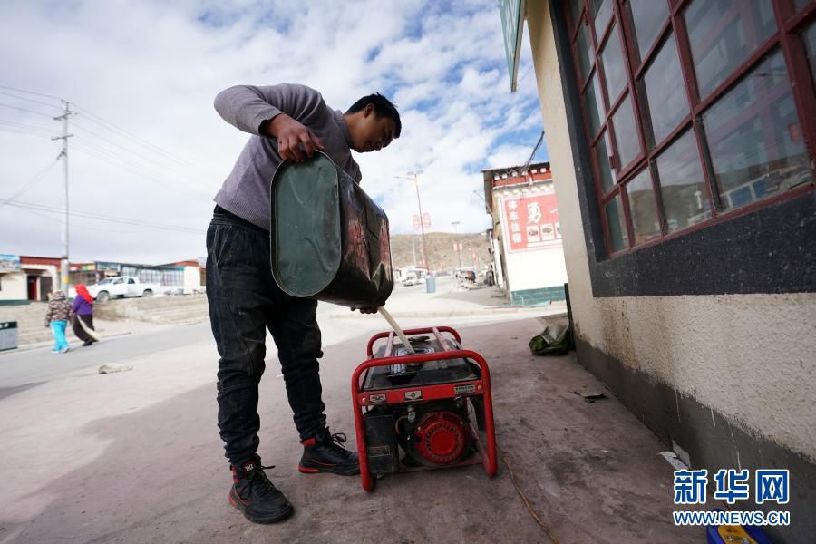 在西藏阿里地区普兰县巴嘎乡岗莎村,一家饭店的工作人员准备用发电机发电(11月29日摄)。新华社记者 詹彦 摄