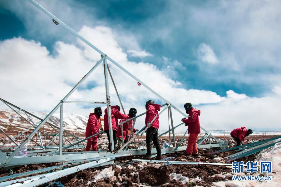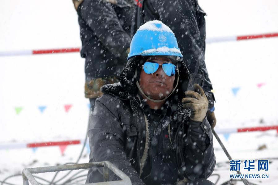 “施工人员服用保护心脏的药,背着氧气瓶上到山顶,工作时心跳一直保持在每分钟120次以上,一个小时就得轮班下来。”谭晋说,山顶的天气变幻无常,有时晴朗,强烈的紫外线照得大家满脸水泡;有时一场大雪,有的工人会瞬间雪盲。