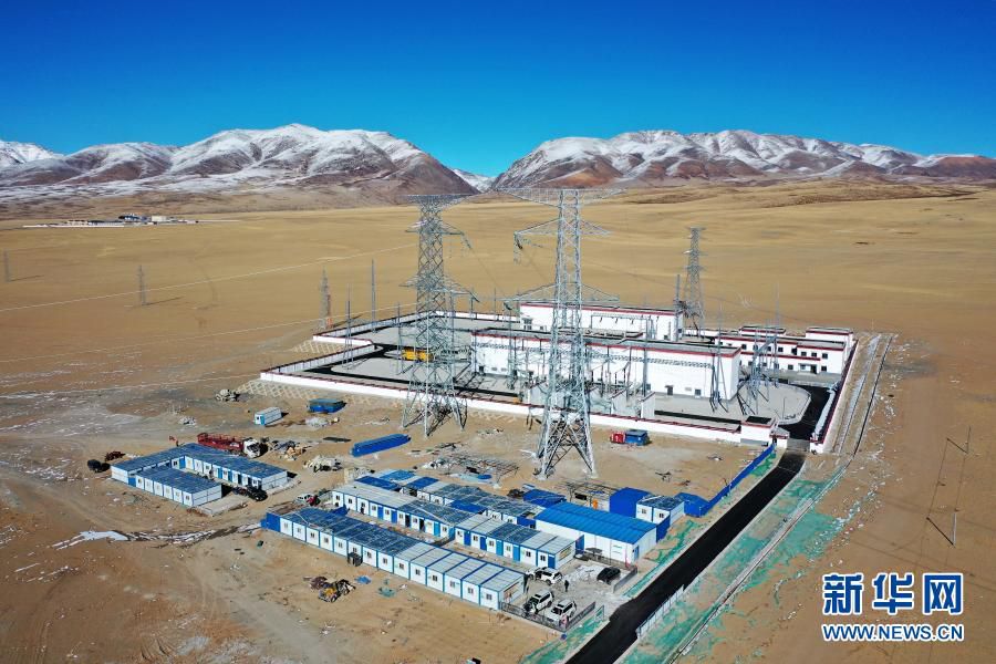 12月4日拍摄的西藏阿里与藏中电网联网工程投运大会霍尔220千伏变电站分会场。新华社记者 詹彦 摄