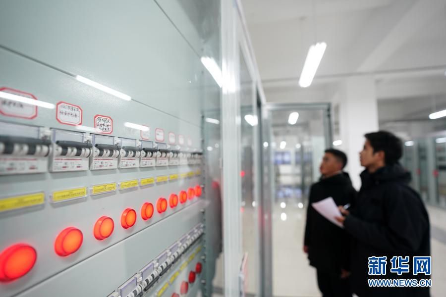 在西藏阿里与藏中电网联网工程萨嘎220千伏变电站,工作人员查看设备运行情况(11月27日摄)。新华社记者 詹彦 摄