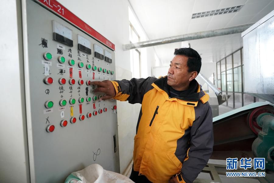 在西藏阿里地区普兰县普兰西德稞原地食品有限公司,工作人员在糌粑加工车间查看设备运行情况(11月28日摄)。新华社记者 詹彦 摄
