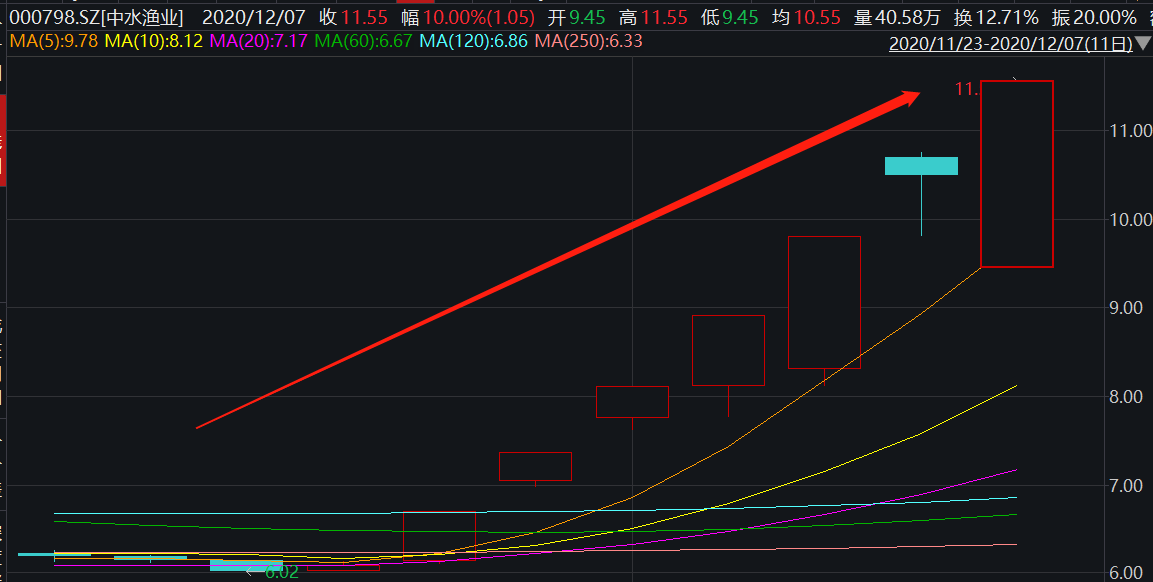 值得注意的是,中水渔业在7个交易日收获了6个涨停,股价从6元开始上涨,累计涨幅90%,市值飙至36.9亿元。