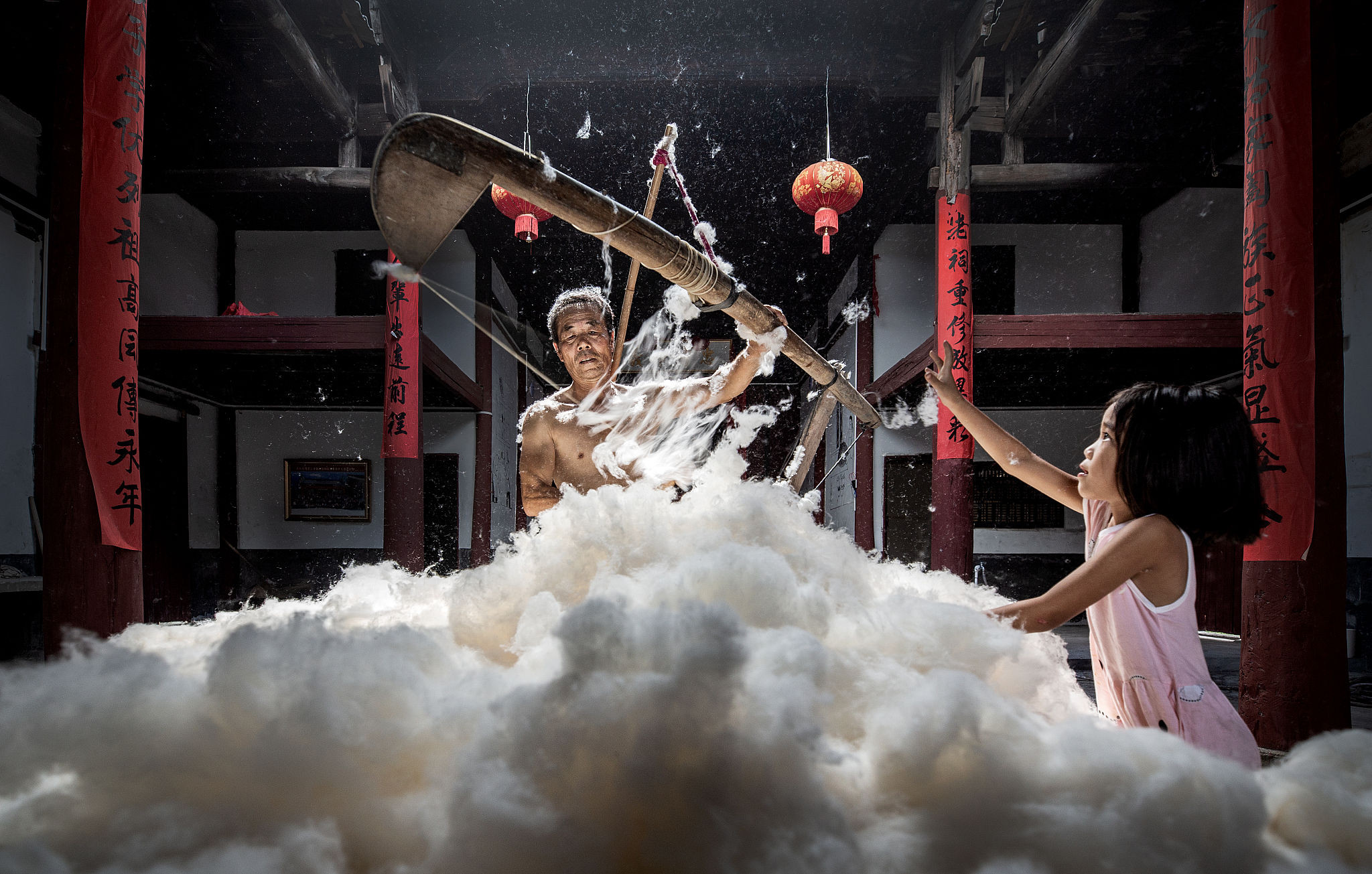 【弹棉花】弹棉花是一门老手艺了,随着一声声弦响、一片片花飞,一堆蓬松的乱絮就变成一条整齐的被褥。过去,弹棉花工匠走街串巷,生意应接不暇,而今已不多见。