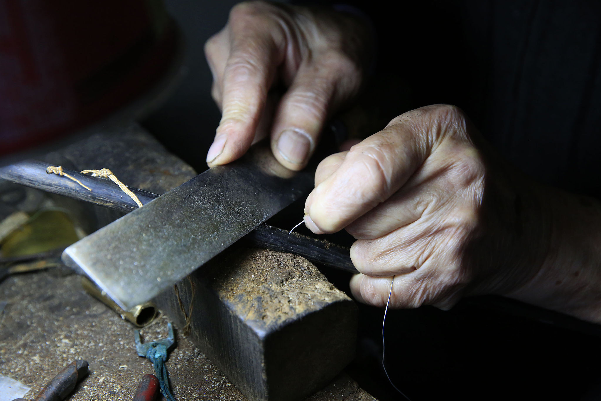 【钉秤】传统手工钉秤是门精细手艺,做好一杆秤要经过从选料制坯到打眼校正等十多道工序,出现任何瑕疵,做出来的秤就会“缺斤少两”。