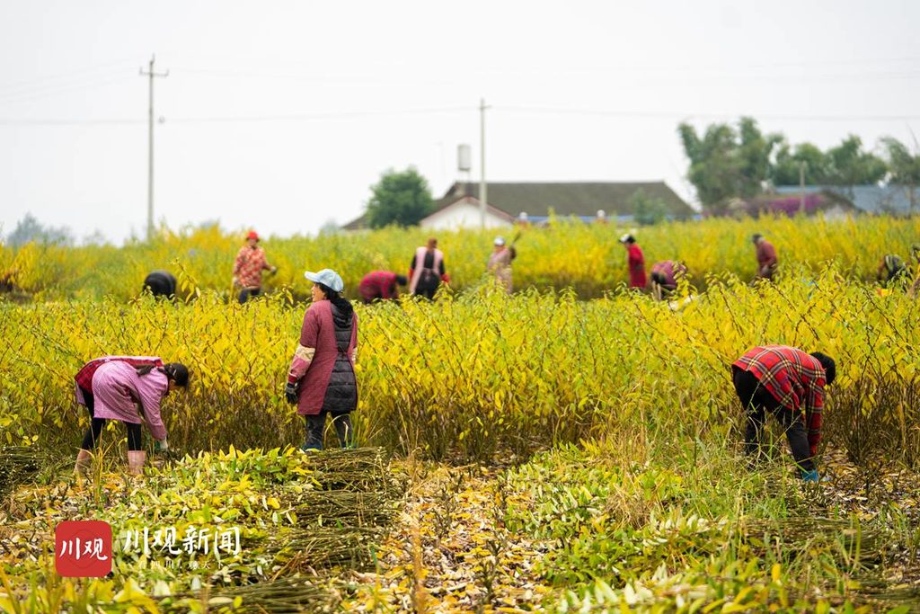 12月9日,在绵阳市安州区河清镇七一村的银柳采收场地,200余名工人正将一束束银柳收割、整理、打捆,处处呈现出繁忙的收获景象。