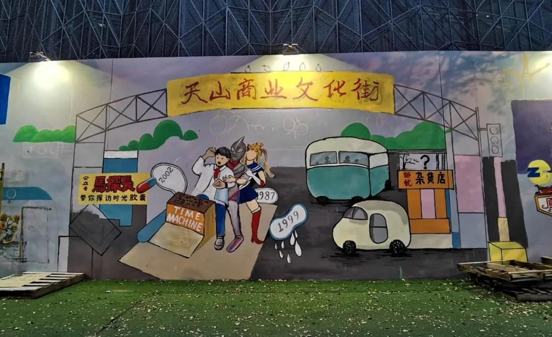 值得一提的是,集市主办方育音堂还邀请了艺术工作者、市民、自闭症儿童,共同加入到以“新旧天山三十年发展建设”为主题的大型墙绘中,回忆时光,展望未来。