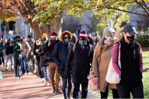 (图说:人们在美国华盛顿的一处新冠病毒检测点排队等候检测。 来源:新华社)