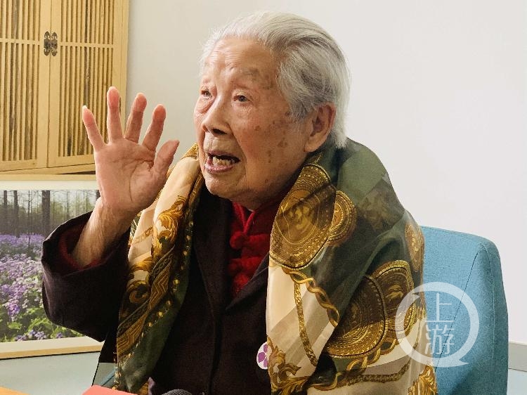 ▲今年96岁的谢桂英老人,在南京大屠杀中失去了亲人。她说,头上伤疤就是反抗日本侵略者时留下的。摄影/上游新闻记者 时婷婷