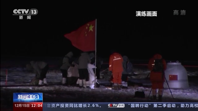 总台央视记者 常艳玲: 我现在是在嫦娥五号返回器模拟舱的处置现场,天气真的非常寒冷,但是我们的空中分队、地面分队根据这个落点预报,已经按照时间准时到达处置现场。
