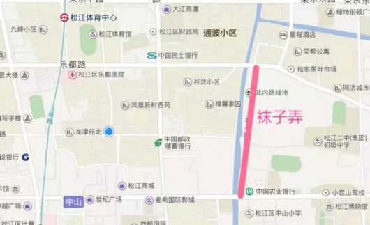 袜子弄位于松江中山东路通波塘东北侧,原名叫中亭桥巷,又叫亭桥巷、北内路。后来叫袜子弄,完全就是因为弄内两旁袜店作坊林立,专门经营袜子,故称袜子弄。