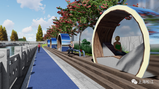 原先,该区域部分岸段绿化种植较为密集,景观层次单一,沿路界面郁闭,滨水区域缺乏慢行步道和景观平台,河畔几乎不能与市民“互动”。根据设计方案,区绿化市容局将结合现有地块地形和场地特点,以“悦活绿道,共享花园”为主题,在沿河景观改造中充分融入松江历史文化元素,增加绿化景观四季效果,突出市民生活休闲功能,形成可停留、可观景的滨水休闲空间。