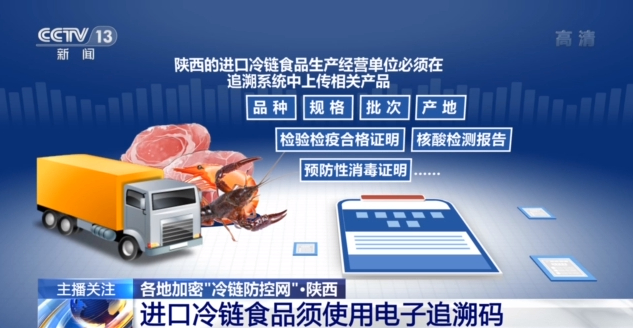 陕西要求,进口冷链食品生产经营单位必须在追溯系统中上传相关产品品种、规格、批次、产地、检验检疫合格证明、核酸检测报告、预防性消毒证明等追溯数据,并使用系统赋予的电子追溯码。