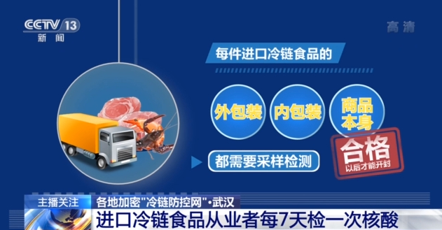 武汉市对目前采购入库的进口冷链食品,要求做到每箱全覆盖核酸检测,即到即检。每件进口冷链食品的外包装、内包装、商品本身都需采样检测,合格后才能开封。未实施“箱箱检”“件件检”的进口冷链食品,禁止入库或上市销售。同时,对进口冷链食品的从业人员每7天实行1次全覆盖核酸检测。
